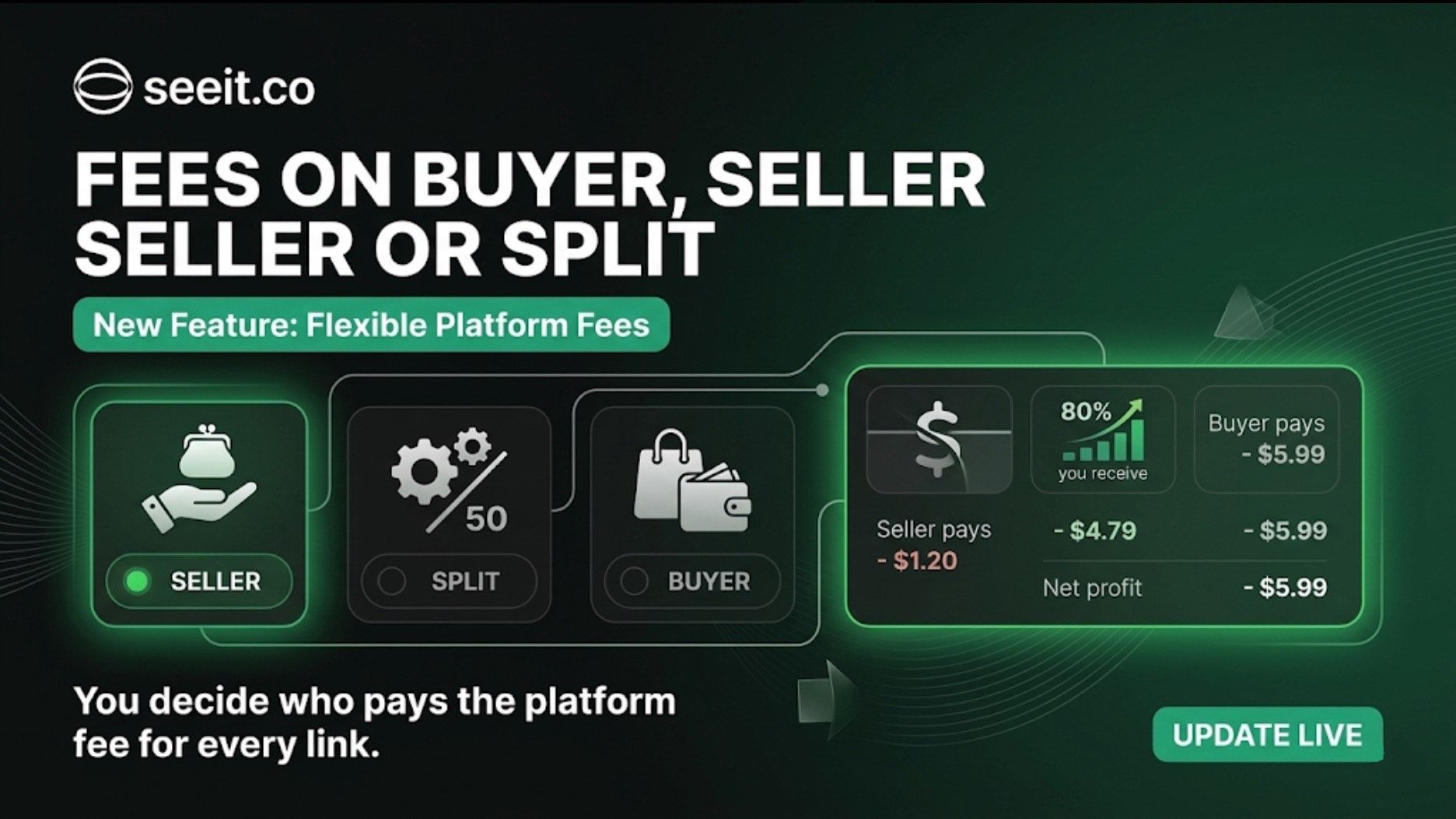 Choose how you and your buyers handle platform costs. You decide who pays the platform fee.